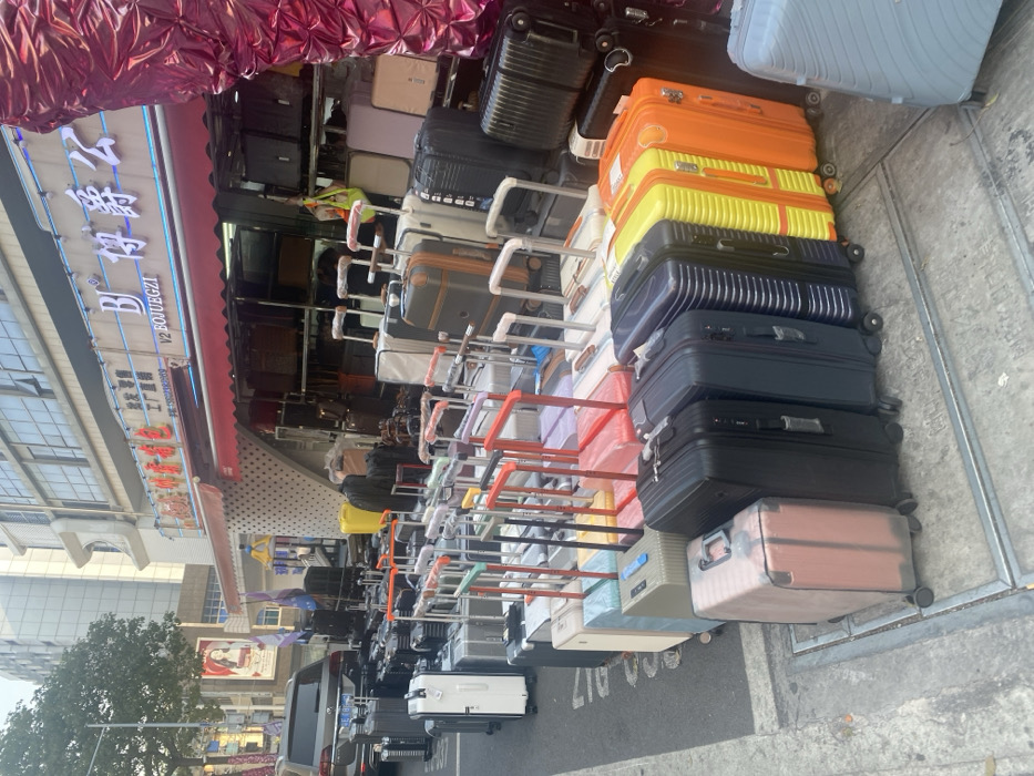 - "A street-side display of numerous suitcases, predominantly hard-shell models, lines a sidewalk" by FM-ikS7J2, licensed under CC BY 4.0