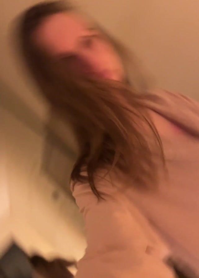 - "The camera films a woman with long brown hair in tan pajamas as she walks down a wooden staircase" by FM-Q4irk1, licensed under CC BY 4.0