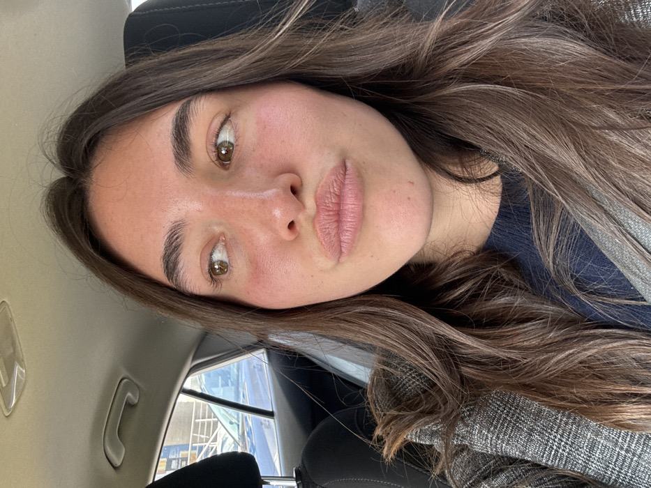 The image captures a close-up of a young adult female seated inside a vehicle in Unknown, Unknown