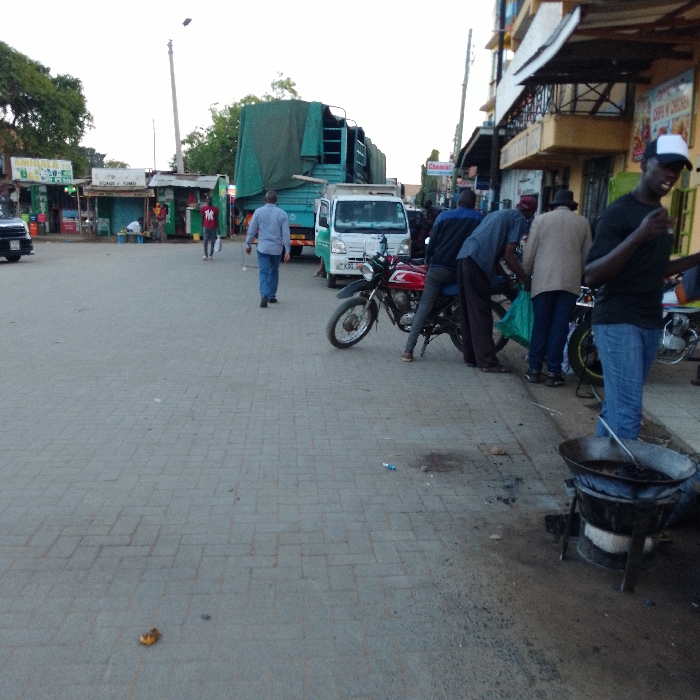 The image displays an urban street scene in Wote, Kenya, observed during daylight