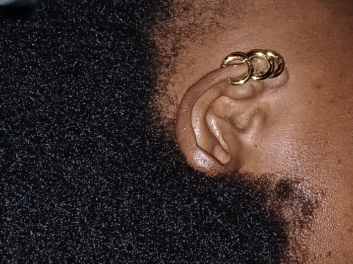 - "A close-up captures a person's ear adorned with a triple gold hoop earring on the upper helix" by FM-yhzPH3, licensed under CC BY 4.0