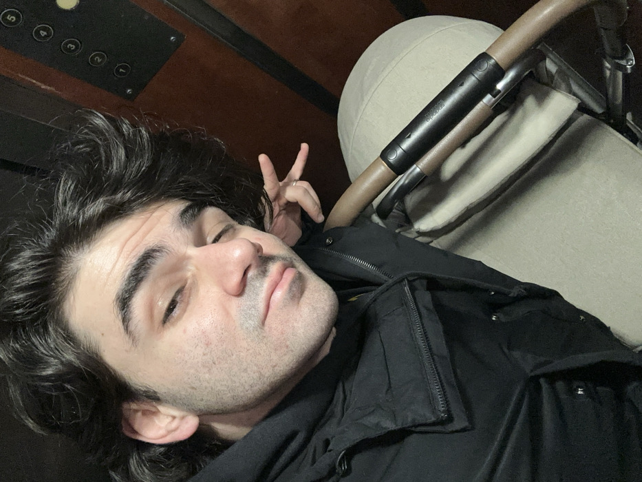 A male individual, appearing to be in his 20s or 30s, is captured in a selfie taken inside an elevator
