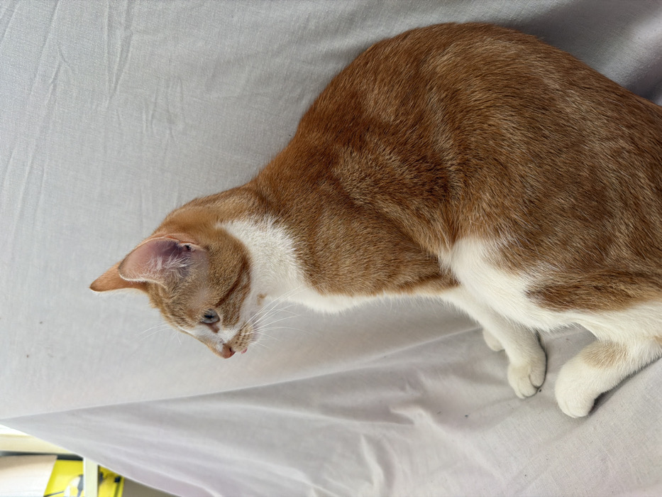 - "A domestic cat, exhibiting an orange tabby and white bicolor coat, is depicted sitting upright in profile, facing left, within an indoor environment in The Hague, Netherlands" by FM-KRhrh2, licensed under CC BY 4.0