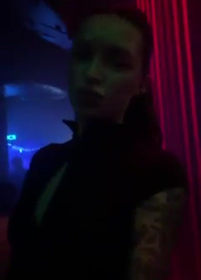 A woman is standing in a nightclub