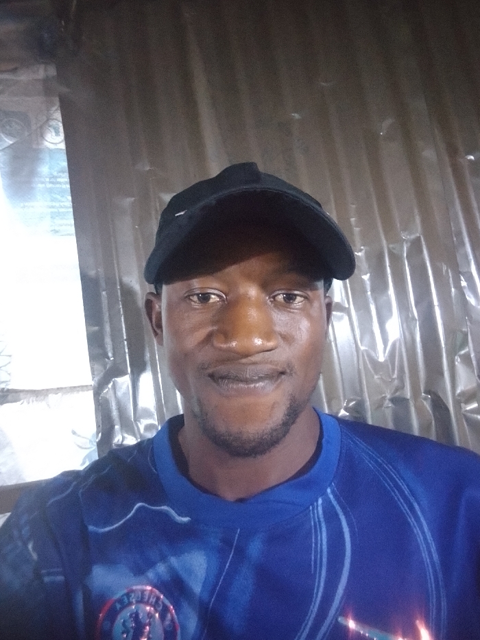 This image depicts an adult male in a head-and-shoulders portrait, situated in an unidentified indoor or sheltered location within Lokoja, Nigeria