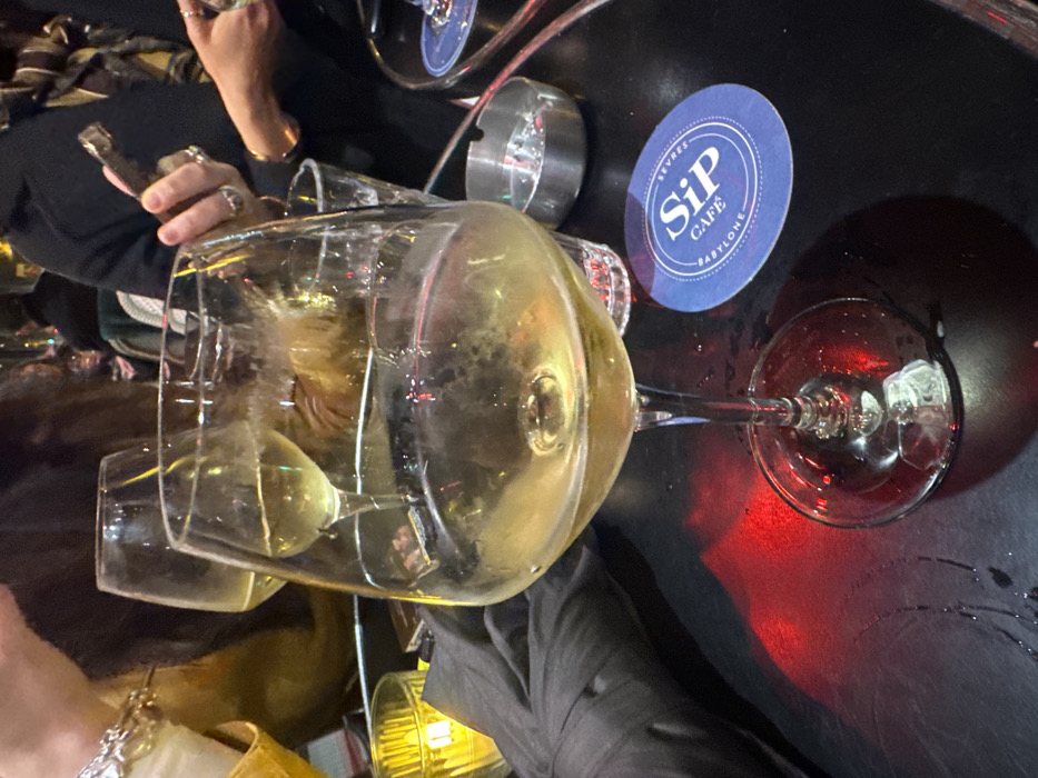 - "A bar scene features a wine glass filled with white wine as the focal point" by FM-BS4Ql2, licensed under CC BY 4.0