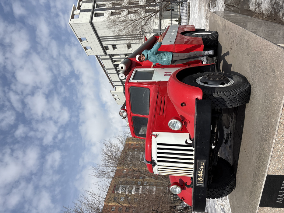 - "A vintage red MAZ-205 fire truck monument, featuring a white grille and cab doors, is displayed on a dark grey stone pedestal in Astana, Kazakhstan" by FM-Ju5AS2, licensed under CC BY 4.0