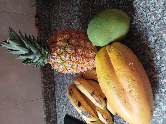 - "An arrangement of various tropical fruits is observed on a speckled dark gray and white countertop, located indoors in Cali, Colombia" by FM-xeHWo1, licensed under CC BY 4.0