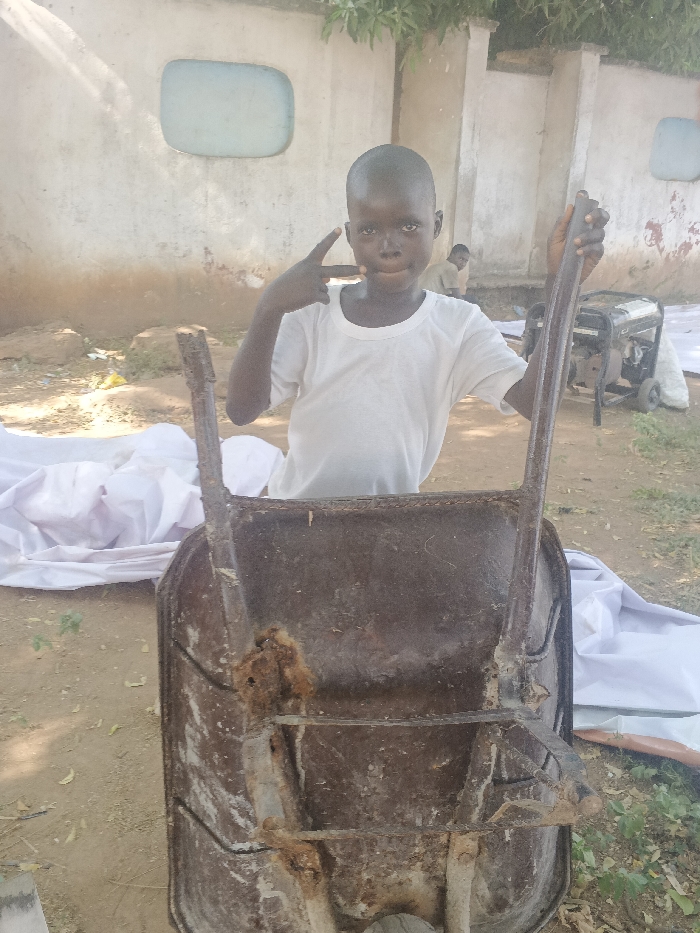 - "A forensic examination of the image reveals an outdoor scene in Doma, Nigeria, depicting a young, dark-skinned male subject positioned centrally behind an inverted, heavily rusted metal wheelbarrow" by FM-uv6jH2, licensed under CC BY 4.0