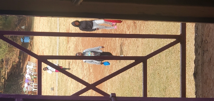 The scene depicts an outdoor area in Ewuaso Oonkidong'i ward, Kenya, viewed through a dark-colored metallic gate or frame