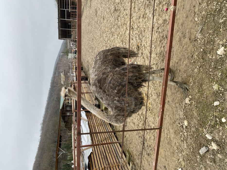 - "A single ostrich stands within an outdoor enclosure, positioned centrally behind a rusty, reddish-brown metal fence that crosses the mid-ground" by FM-uK62y1, licensed under CC BY 4.0