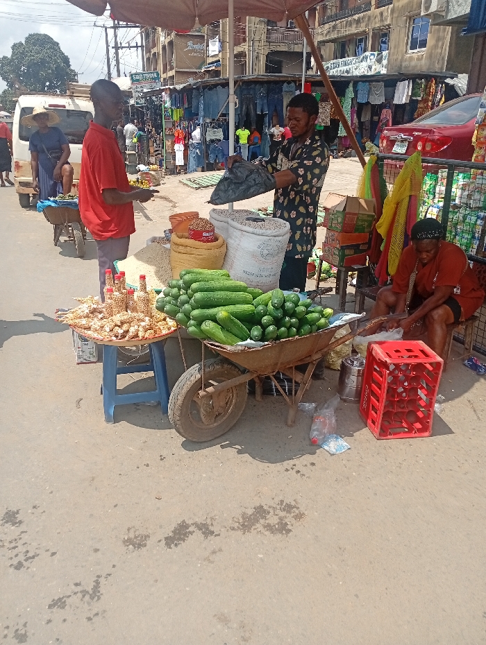 - "This image depicts a bustling outdoor street market scene in Asaba, Nigeria, under daylight conditions" by FM-M3rrD3, licensed under CC BY 4.0