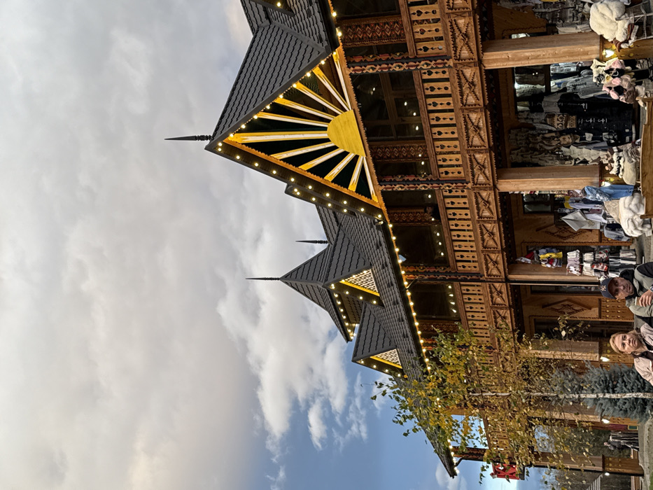 - "The image displays a multi-story, elaborately carved wooden building, identified as a market and retail establishment in Yaremche, Ukraine" by FM-83v1j2, licensed under CC BY 4.0
