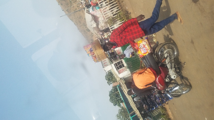 This image depicts a daytime street scene in Nyanya, Nigeria