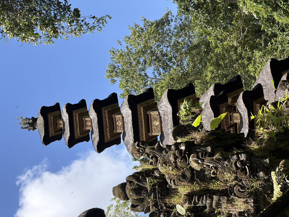 - "A tall, ornate Balinese pagoda towers against a clear blue sky with scattered clouds and surrounding green foliage" by FM-PcEqo1, licensed under CC BY 4.0