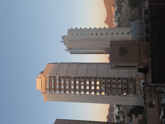 - "The image depicts an urban landscape in Makkah Al Mukarramah, Saudi Arabia, at either dawn or dusk, under a clear blue sky with golden light illuminating the scene from the left" by FM-ttalh2, licensed under CC BY 4.0