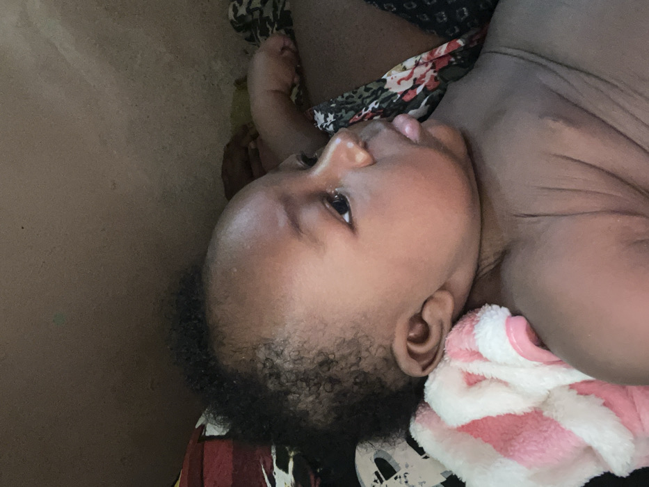 The image displays an infant, located in Kakau, Nigeria, positioned indoors