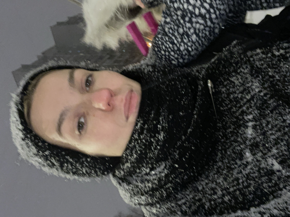 - "One female individual, approximately 20-35 years of age, is depicted from the chest up in an outdoor urban setting during low light conditions, consistent with nighttime or heavy overcast weather with active snowfall" by FM-hENj12, licensed under CC BY 4.0