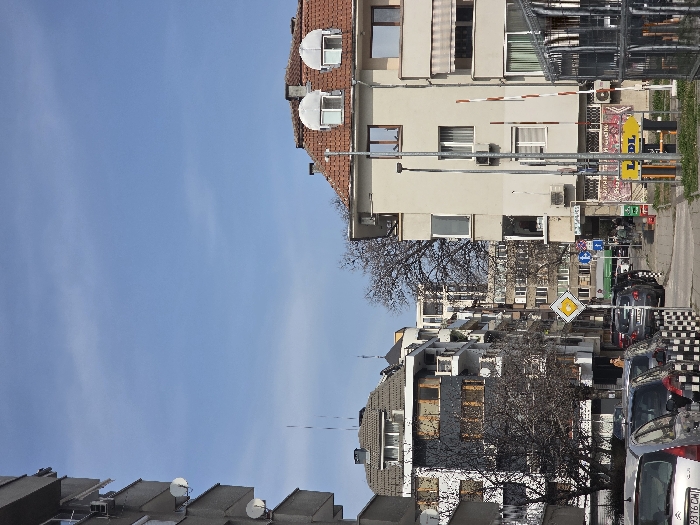 - "The scene depicts a clear-day urban streetscape in Plovdiv, Bulgaria, characterized by residential and commercial buildings under a bright blue sky" by FM-Yg6Sn2, licensed under CC BY 4.0