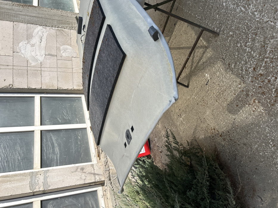- "The scene in Rudozem, Bulgaria, depicts a light grey car headliner, possibly detached from a vehicle, resting on a rusted metal folding trestle outdoors" by FM-bkktq2, licensed under CC BY 4.0