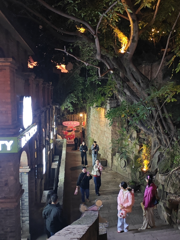 - "The image depicts a nighttime outdoor scene on a sloping pedestrian pathway in Nan'an District, China" by FM-TY87o1, licensed under CC BY 4.0