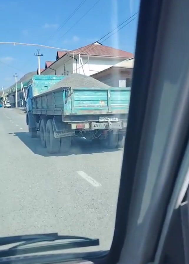 - "A person is driving a vehicle down a paved road, passing a light blue dump truck that is loaded with gravel" by FM-HYuxF3, licensed under CC BY 4.0