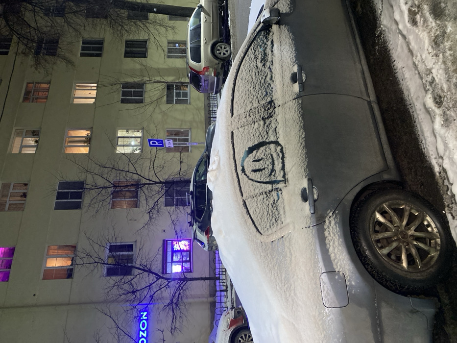 - "A sideways shot shows a snow-covered silver car parked on a snowy street" by FM-2kUbs1, licensed under CC BY 4.0