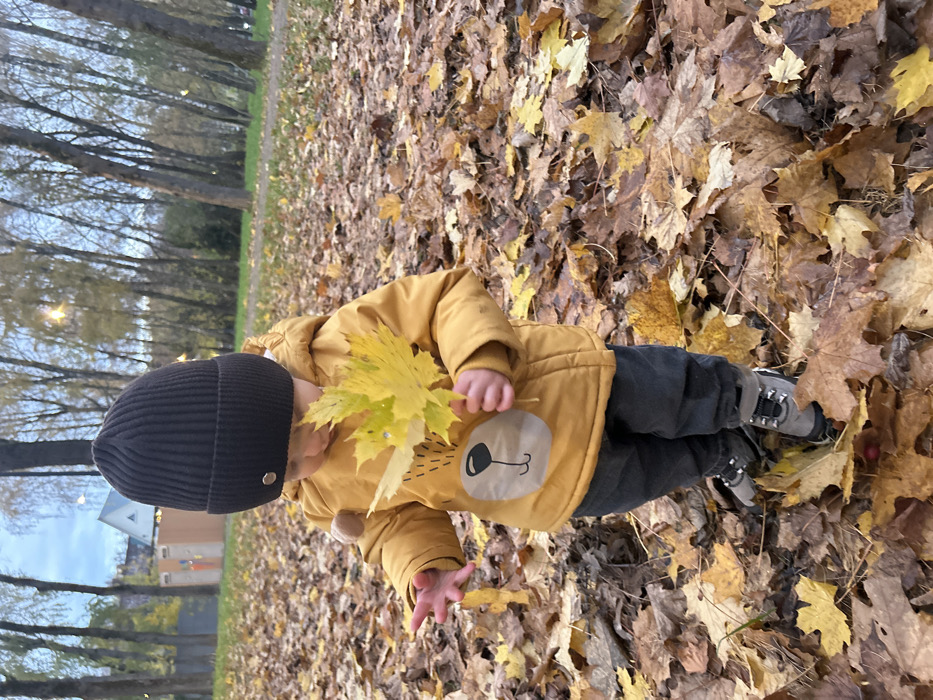 An image captured in Kolomna, Russia, depicts a young child standing in an outdoor environment during autumn