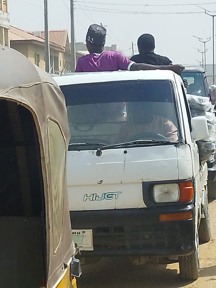 The image depicts a daytime street scene in Fagge D1, Nigeria