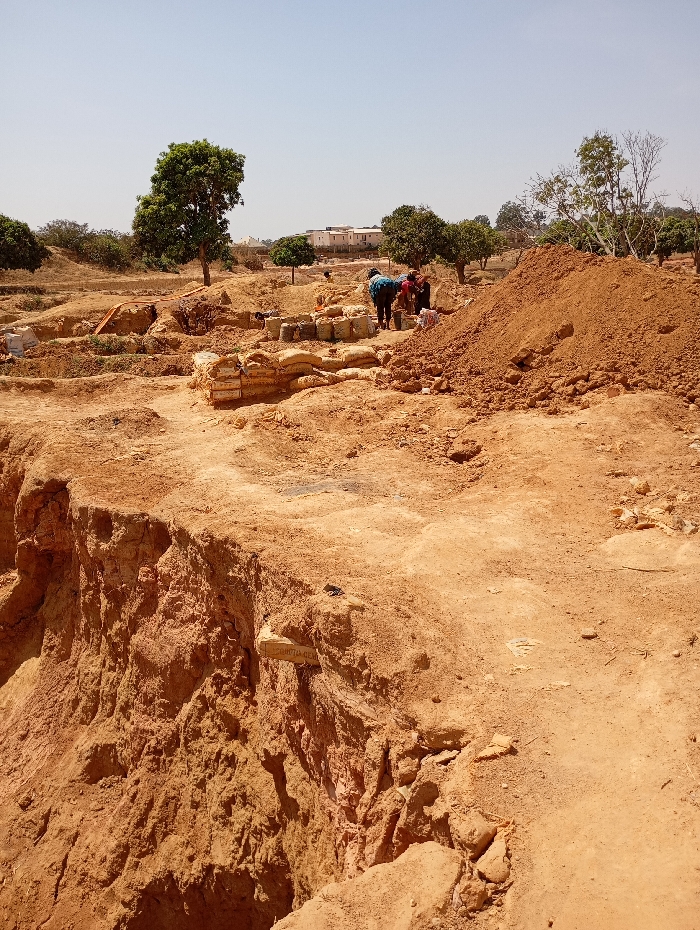 This image depicts an active excavation or construction site in Rayfield, Nigeria, under clear daylight conditions