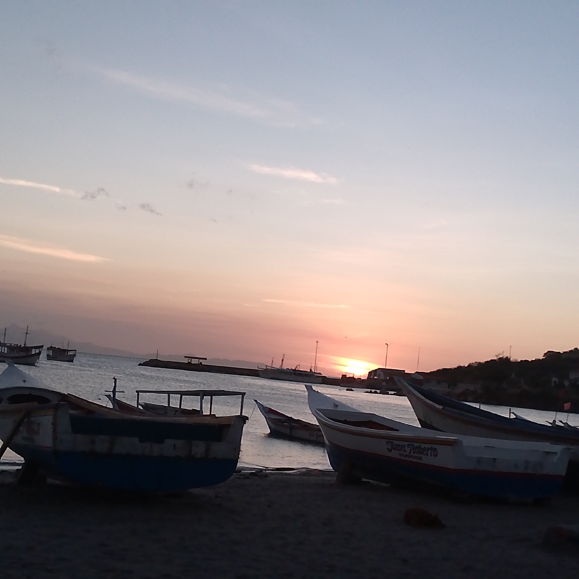 - "The image presents a wide-angle view of a sunset over a coastal bay in Juan Griego, Venezuela" by FM-eBBMp1, licensed under CC BY 4.0