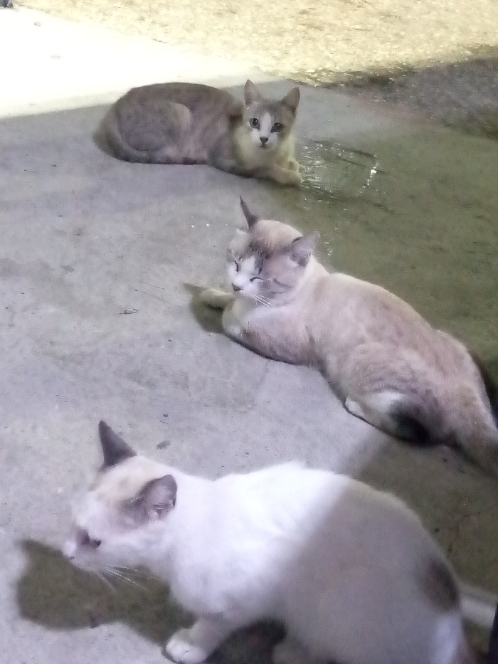 - "Three cats rest on a gray concrete surface" by FM-Q5qB73, licensed under CC BY 4.0