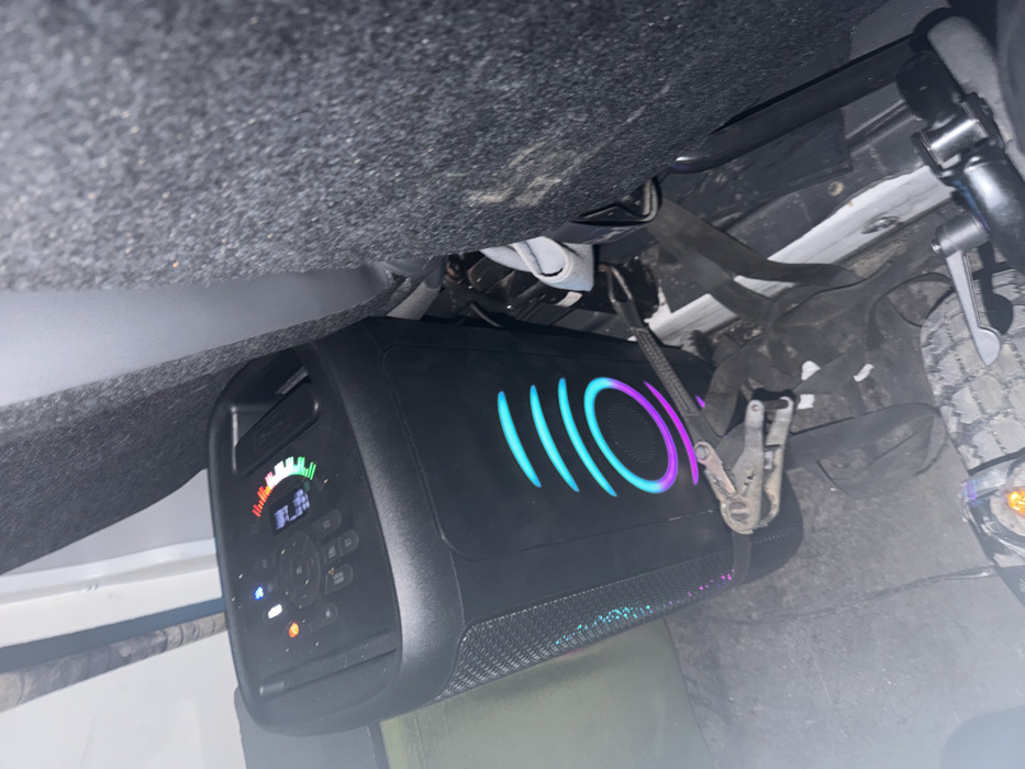 - "A black, vertically positioned portable speaker, likely a JBL PartyBox model, is secured within a vehicle interior in Tryavna, Bulgaria" by FM-ctvyb2, licensed under CC BY 4.0