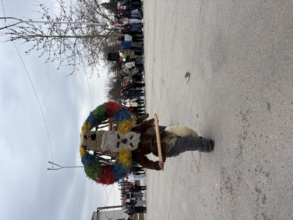 The image depicts an outdoor daytime scene in Aidemir, Bulgaria, likely a public square or street