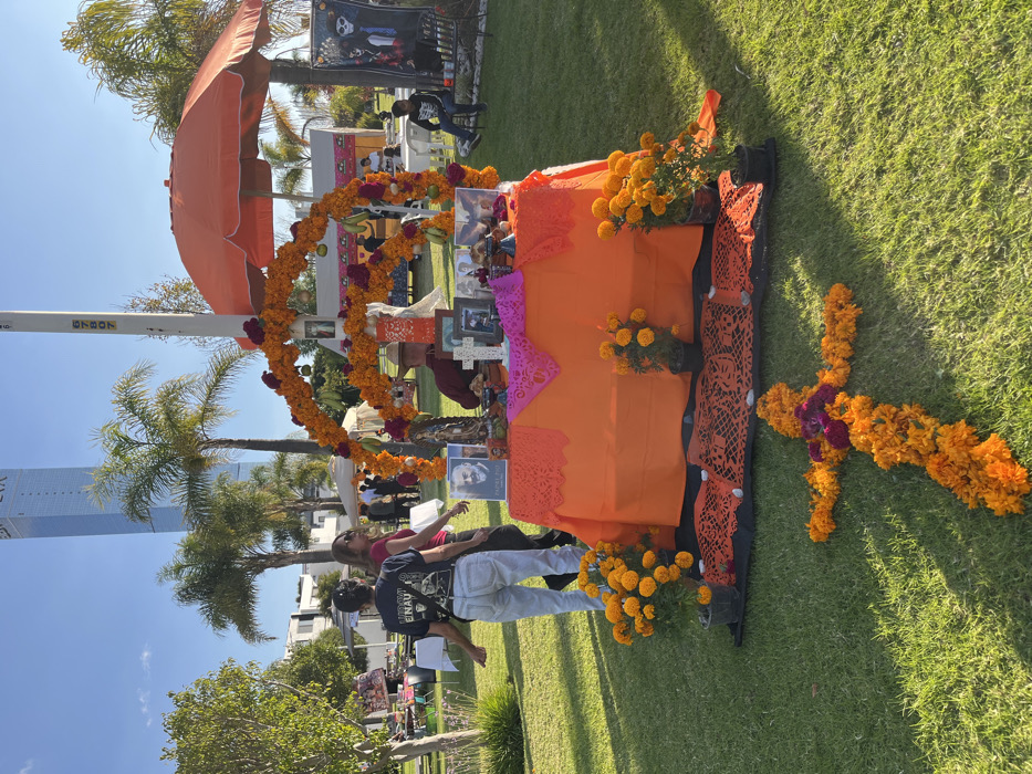- "The image displays an outdoor Day of the Dead (Día de Muertos) altar situated on a manicured green lawn under a clear blue sky" by FM-gVUWz2, licensed under CC BY 4.0