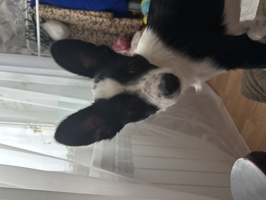 - "A close-up forensic portrait depicts a small, short-haired domestic dog, colored black and white, standing indoors in the city of Ольховка, Russia" by FM-I5JgH2, licensed under CC BY 4.0