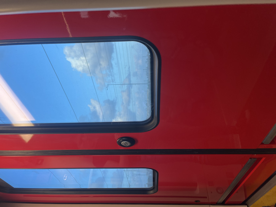 - "The image displays the interior of a modern transit vehicle, identified as a Tel Aviv Light Rail Red Line train, captured from a low vantage point looking outwards" by FM-sACiC3, licensed under CC BY 4.0
