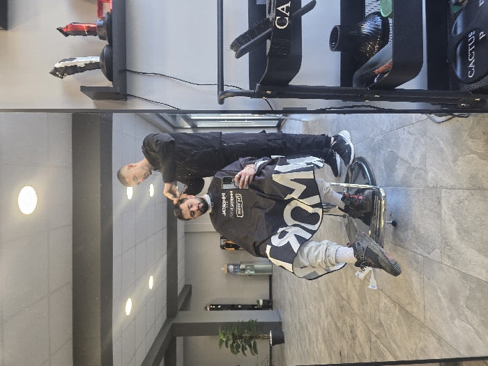 - "This image depicts a modern barber shop located in Yambol, Bulgaria, captured via a mirror reflection, creating a selfie perspective" by FM-IYQQn1, licensed under CC BY 4.0