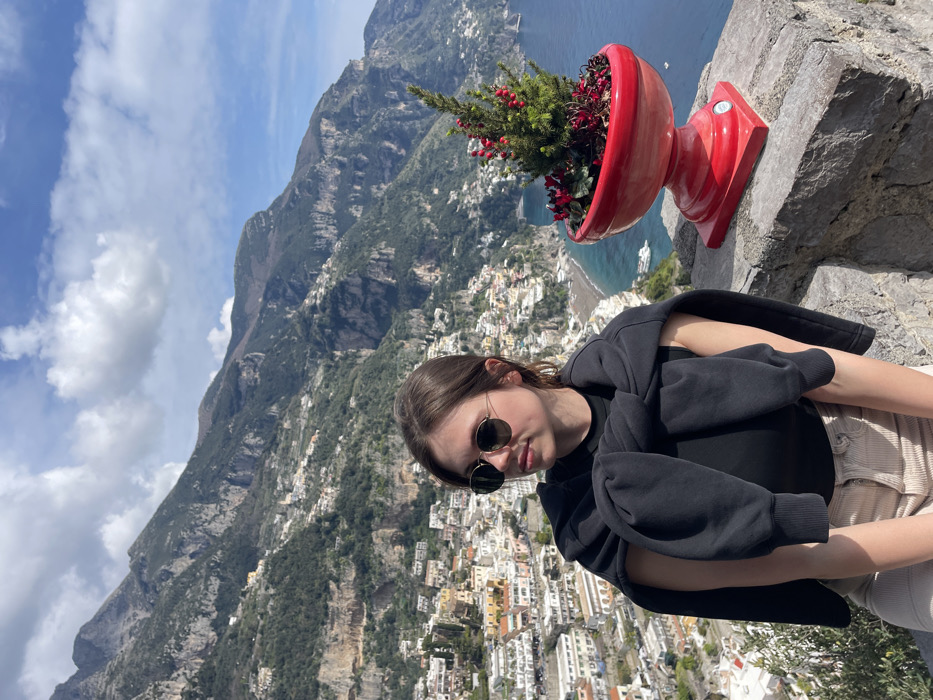 - "The image depicts a female subject seated on a grey stone wall against a panoramic view of Positano on the Amalfi Coast, Italy" by FM-4OCh93, licensed under CC BY 4.0
