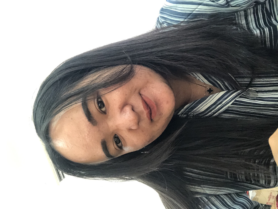 The image presents a close-up, chest-up portrait of a young adult female, located in Semarang, Indonesia
