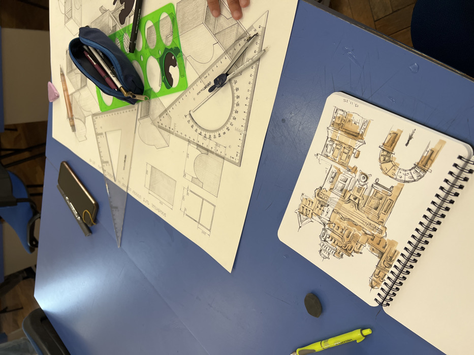 - "The image displays an overhead view of a blue tabletop, likely in a classroom or studio at the National University of Architecture and Construction of Armenia (NUACA) in Yerevan" by FM-c63o33, licensed under CC BY 4.0