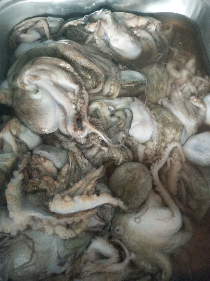- "A stainless steel container is filled with a mass of fresh octopuses" by FM-p7z193, licensed under CC BY 4.0