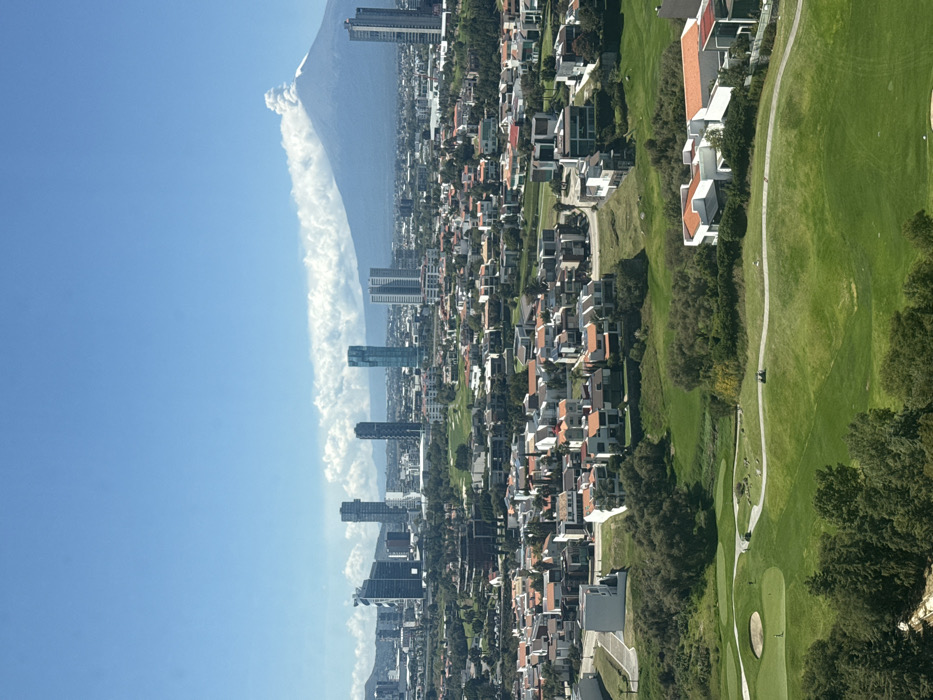 - "The image displays an elevated panoramic view of a developed urban and suburban landscape in Puebla City, Mexico, situated in the Lomas de Angelópolis / Sonata area, with the Popocatépetl volcano in the distant background" by FM-EfOw13, licensed under CC BY 4.0