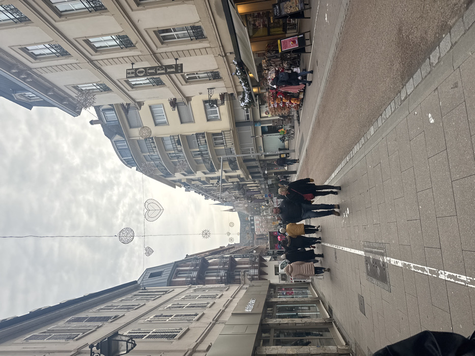 - "The image displays a pedestrianized street in the city of Strasbourg, France, observed from a low angle, looking down the thoroughfare" by FM-vL0Qr1, licensed under CC BY 4.0