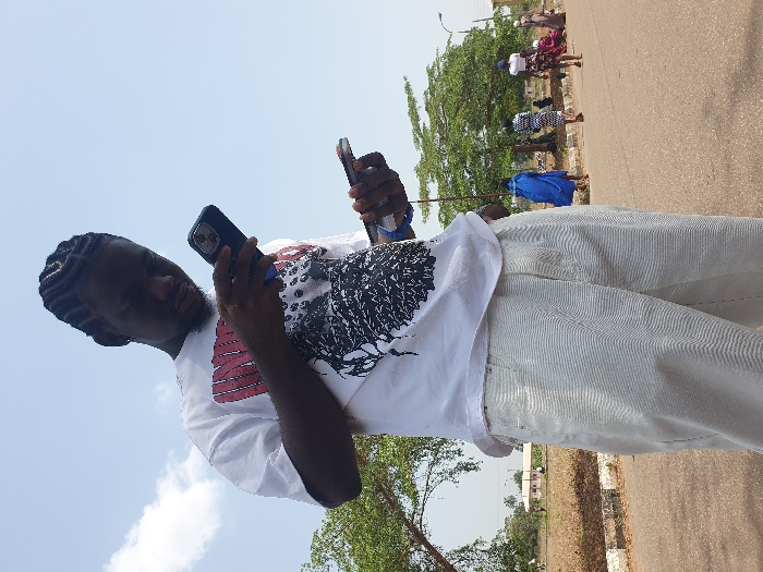 The scene, set outdoors in Ogbogbo, Nigeria, under a bright, clear sky, features a young dark-complexioned male in the foreground