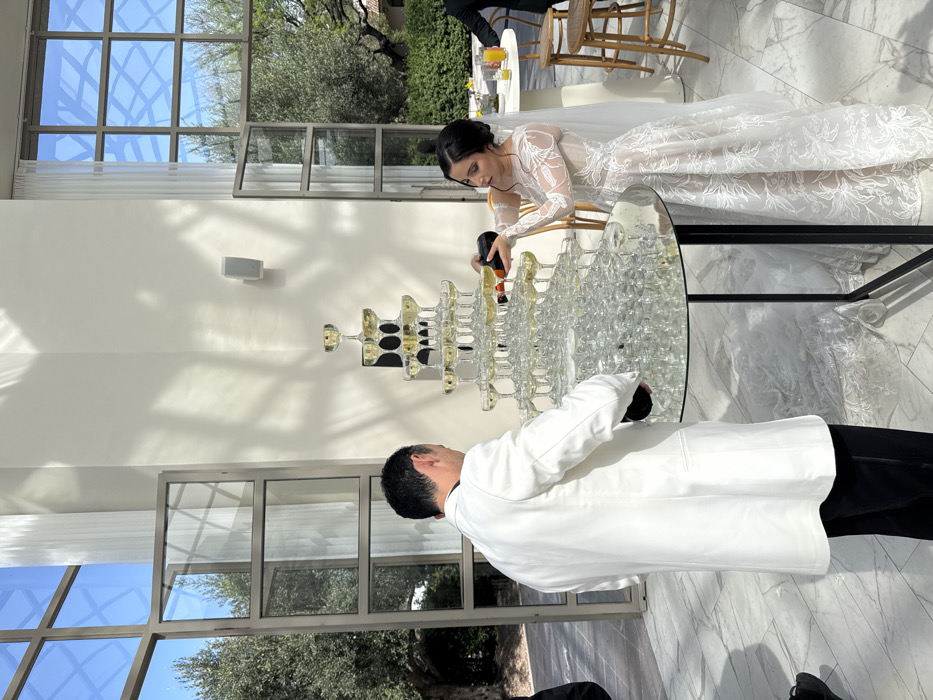 - "The scene depicts a wedding reception in a brightly illuminated room in La Candelaria, Mexico, featuring a champagne tower" by FM-m0ANT2, licensed under CC BY 4.0