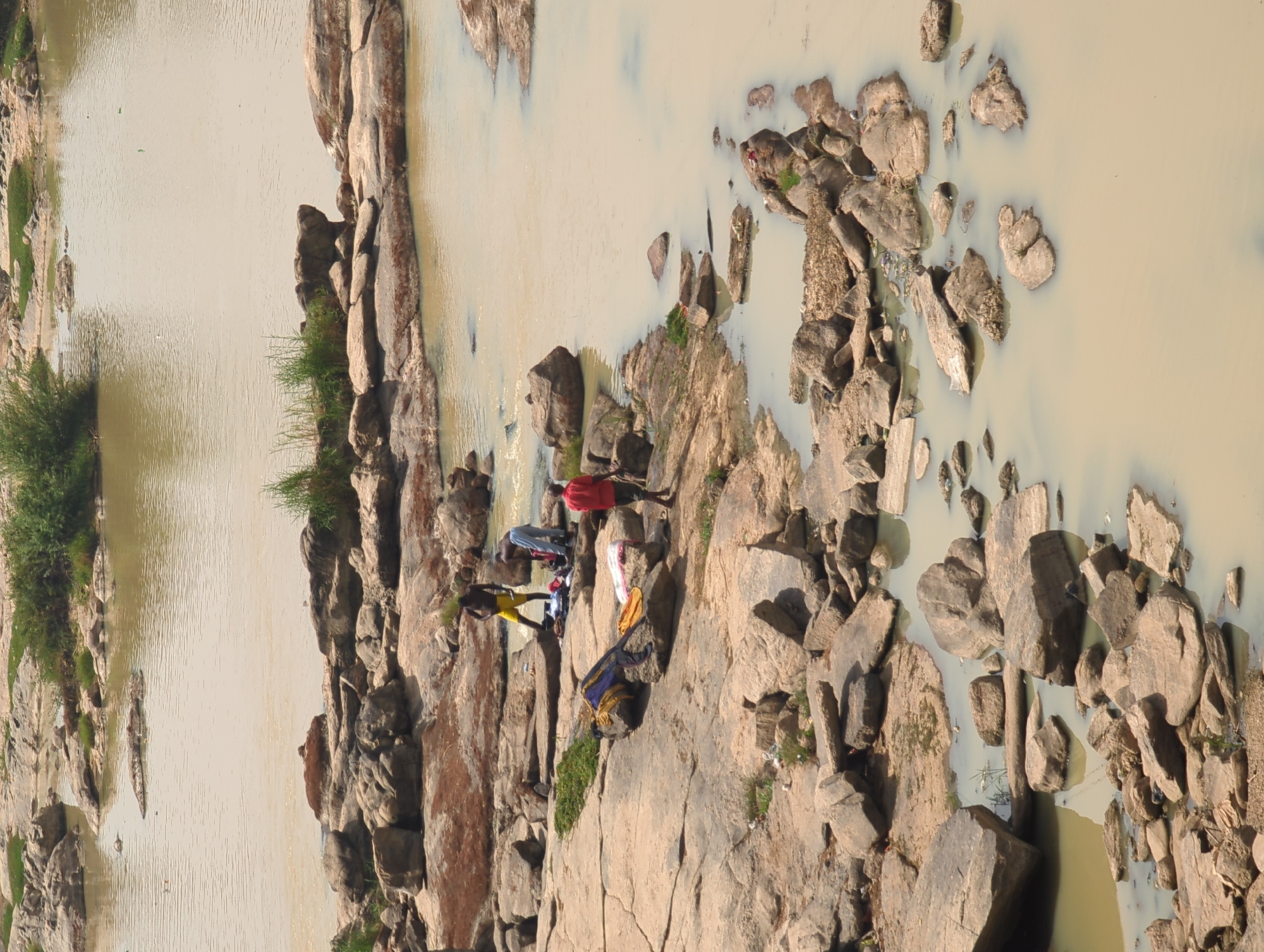 - "An elevated view captures a section of the Kaduna River in Kaduna, Nigeria, characterized by murky, light brown water interspersed with numerous large, exposed granite boulders and rocks" by FM-2tuG03, licensed under CC BY 4.0