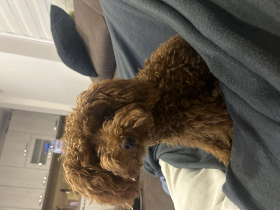 - "A reddish-brown, curly-haired dog, consistent with a poodle, is depicted indoors in Plovdiv, Bulgaria" by FM-hU2Hi1, licensed under CC BY 4.0