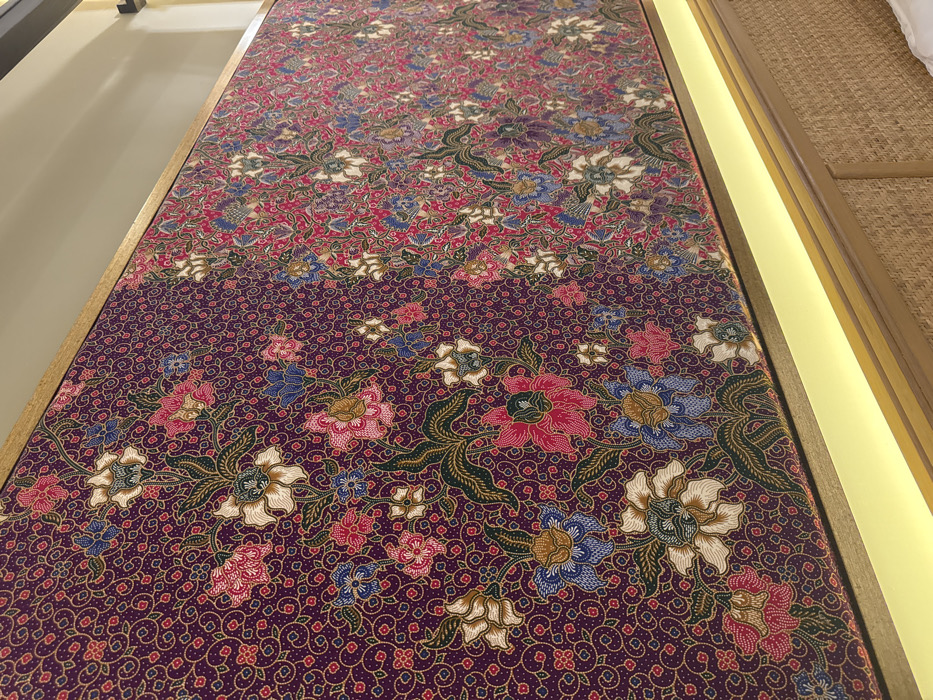 - "The image captures a large framed artwork featuring a traditional Malaysian batik pattern, mounted on a light-colored wall within an interior space in George Town, Malaysia" by FM-xTDQG2, licensed under CC BY 4.0