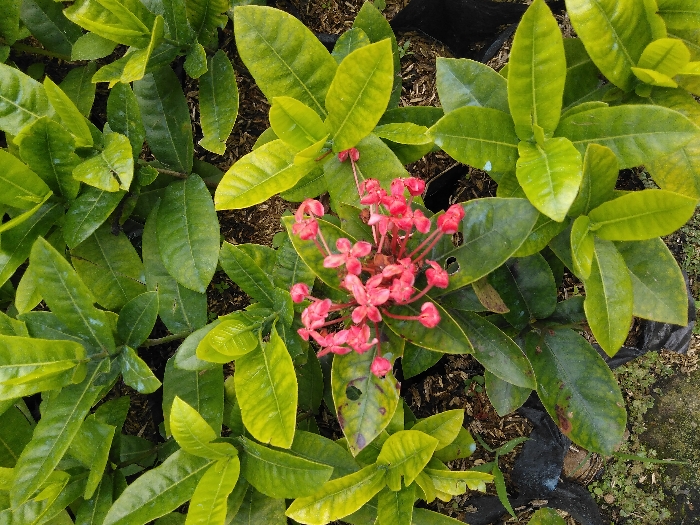 - "An overhead, close-up photograph depicts a dense cluster of flowering plants, identified as Ixora coccinea, situated in El Rincón de Monagas, Venezuela" by FM-f4dh13, licensed under CC BY 4.0